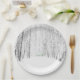 Weiße Weihnachtsgeschichte. Einsame und leere grüne Bank am Ende der Gasse im Birkenhain. Kleine Bank, hohe Bäume, niemand um sich herum. Schneefall still. Weihnachtsstimmung. Frohe Weihnachten und viel Glück ins neue Jahr!