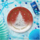 Dieses weiße weiße Weihnachtsbaumplatten zeigt Happy Holidays in goldenen Farbtexten auf einem roten und weißen Hintergrund. Ideal für Feiern und Feiern!