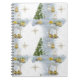 Zarte Gold- und Silberbaumdekorationen, umgeben von salzgrünen, festlichen Blättern mit frisch gefallenem Schnee in einem Winterwunderland.