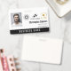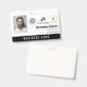Abzeichen von Büroangestellten mit einem sauberen minimalistischen Design in Schwarz und Weiß. Fügen Sie ein Foto des Mitarbeiters zusammen mit Namen und Beruf hinzu. Personalisieren Sie weiter mit drei Logos und dem Namen des Unternehmens.