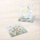 Der Frühlingssinn mit Sonnenschein und Beifall auf Ihre Zuhause, wenn Sie dieses schöne Untersetzer Set mit einem weißen, blühenden Garten in voller Blüte, besucht von einem Schmetterling und Ladybugs in den Schattierungen Weiß, Blassblau, Grün und Gelb.