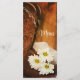 Das bezaubernde White Daisies and Cowboy Boots Country Western Wedding Menu mit den Details des Essens, das Sie auf Ihrem Western Thema Brautparty, Verlobung Stall Party oder Ehe Empfang, indem Sie den Salat oder ersten Gang, Vorspeise oder zweiten Gang und Dessert oder dritten Gang. Dieses gemütliche und dennoch elegante Hochzeitsmenü im Ranch-Stil bietet ein malerisches, digital erweitertes Blumenfoto mit braunen Lederkuhstiefeln, blühenden Blume, Brautschleier und verwittertem Braun.