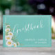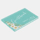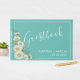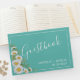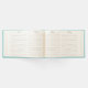 Hübsches, kundenspezifisches Gästebuch-Design mit einer farbenfrohen, weißen Farbecke auf aquamarinem Hintergrund mit weißen, anpassbaren Textblöcken in modernen Schriftart