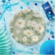 Hübsche, weiße Farbgestaltung auf einem weichen, grünen Hintergrund.