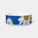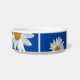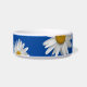 Niedliche Blumenschale mit weißem Dekor auf blauem Hintergrund. Mit einer weißen, anpassbaren Schrift können Sie Ihre eigenen Informationen hinzufügen. Ideal, um dem Haustier eine eigene personalisierte Schüssel zu geben.