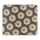 Ein Muster weißer Gänse mit gelben Mittelpunkten auf einem bernsteinfarbenen Hintergrund.