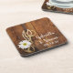 Passen Sie das charmante White Daisy and Horse Bit Country Western Wedding Cork Untersetzer Set mit den persönlichen Namen der Braut und Bräutigam und Heiratsdatum an. Dieses lässige und dennoch elegante Set zum Thema Hochzeitskork-Untersetzer im Pferd zeigt ein malerisches Blumenfoto einer weißen, dunklen Blume-Blüte, Perlenhalskette, Pferdchen- und Lederreine mit braunem, verwittertem Stallholz. Ideal für den Einsatz in Ihrem Party Empfang im Stallstil.