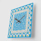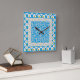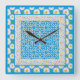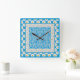 Eine sehr hübsche quadratische Wall-Uhr, mit einer Mischung aus drei weißen Daisy-Mustern auf Blue, einschließlich Daisy Chain Hearts and Circles. Teil der Posh & Painterly 'Daisy Chain' Kollektion.