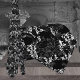 Eine dramatische schwarz-weiße Hochzeitshalsbinde mit schwarz-weißem Blumendampf, gemischt mit Vintagen schwarz-grauen Blumen. Das ist eine perfekte Krawatte für Bräutigam und Trauzeuge.