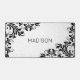 Dieses Design zeichnet sich durch ein anmutiges, weißes Damast-Muster mit zarten schwarzen blühenden Wirbel aus. Sie können es mit Ihrem eigenen Monogramm für eine benutzerdefinierte Touch personalisieren