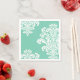 Das Design ist wunderschön feminin und weist ein weißes Damast-Muster auf einem Aquahintergrund auf.