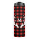 White Deer Antlers Buffalo Karo Kariert & Initial Thermosbecher