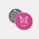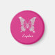 A classy white diamond butterfly design to personalize name in white script text on fuchsia background.