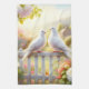 Two white doves rest together on a weathered garden gate, framed by blooming roses and soft spring foliage beneath a warm, glowing sky. The scene evokes gentle romance, peace, and timeless countryside charm, blending cottagecore nostalgia with a dreamy watercolor aesthetic. Pastel pinks, creamy whites, and sunlit greens create an airy, serene mood that feels tender, hopeful, and quietly joyful. The composition feels storybook and intimate, inviting a sense of calm, connection, and slow living inspired by floral gardens and rural beauty. AI generated artwork.