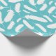 Fügen Sie Ihren Geschenken eine leichte und luftige Touch mit diesem Federdruckpapier hinzu. Dieses Muster zeigt Abbildungen von Federn aus weißer Ente vor einem aquamarinen oder aquablauen Hintergrund.