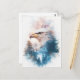 This breathtaking design features a majestic white eagle shown in a noble profile view, with its silhouette elegantly blending into a tranquil woodland scene. Created as a high-quality digital illustration in a soft watercolor style, the eagle has brilliant white plumage and a sharp, light-colored beak that conveys a sense of quiet power and watchful wisdom. The lower half of the eagle's form transitions into a dense grove of teal and deep blue evergreen trees, while a soft mist and glowing light orbs drift through the forest floor. Above the eagle, a warm sunset sky is filled with soft pink and orange clouds, shimmering white stars, and a small flock of birds flying in the distance. The overall aesthetic is peaceful, mysterious, and full of natural wonder, making it an exceptional choice for bird lovers and fans of double-exposure wildlife art. This elegant eagle postcard is a perfect choice for sending a meaningful "thinking of you" note or a powerful greeting to a friend who finds strength in the wild beauty of nature. You might choose to use this artistic card for a mountain-themed event invitation or to celebrate a professional achievement with a touch of noble elegance for your colleagues. It also makes a beautiful decorative piece for a modern rustic office wall or a stylish addition to a nature journal as a small token of forest magic. This versatile design is also an excellent choice for a housewarming message, a retirement thank you note, or as a heartwarming way to share a message of joy for any situation or event.