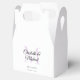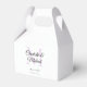 Kundenspezifische, moderne, einfache, elegante Hochzeit "Favor Box". Machen Sie Ihre Hochzeit mit unseren eleganten, maßgeschneiderten Vorgeschenkdosen noch attraktiver. Diese zeitlosen, minimalistischen Boxen eignen sich hervorragend, um Ihren Gästen kleine Leckereien, Geschenke oder kleine Zwischenmahlzeiten in stilvollem Ambiente zu präsentieren. Auf der Vorderseite der Schachtel befindet sich ein personalisiertes Monogramm des Paares, dessen Namen und das Hochzeitsdatum. Auf der Rückseite des Feldes befindet sich eine anpassbare "Danke"-Nachricht, mit der Sie eine einzigartige, herzliche Touch hinzufügen können. Mit seinem klassischen und raffinierten Design ergänzt diese Gefallen Box jedes Hochzeitstil, von modern bis traditionell. Warum dieses Produkt auswählen? Diese personalisierten Gefälligkeitsboxen sind nicht nur praktisch, um kleine Gegenstände zu halten, sondern dienen auch als unvergessliche Sake für Ihre Gäste. Ideal für Hochzeiten, Verlobungsfeiern oder andere Feiern. Feiern Sie Ihre Liebe stilvoll und lassen Sie Ihre Gäste sich mit unseren maßgeschneiderten Gastgeschenk Hochzeiten schätzen. Editieren Sie Ihr Produkt in wenigen Minuten. Sie können Schriftart/Größe/Farbe und Position mit "weiter personalisieren" ändern.