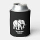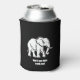 A can cooler in black with white elephant.