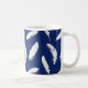 Weiße Federn auf dunkelblau / Marine / indigo - gemischtes mediales Grafikdesign von weißen Federn, schwebend auf einem kontrastfarbenen Hintergrund