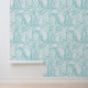 Helle, luftige, skurrile und aufwändig detaillierte Federn schweben auf einem weichen, babyblauen Hintergrund. Erschafft eine ruhige und entspannende Atmosphäre. Ideal für die Wände eines neuen Babys oder die Zimmerdekoration.