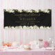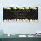 Ein modernes, weißes, blumengeschmücktes Banner mit dem Set der Details Ihres Abschlusses in schicker Goldtypografie auf schwarzem Hintergrund. Entwickelt von Thisisnotme©