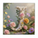 White Floral Garden Monogram Letter J Fliese