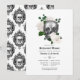 Whimsical Vintag Blumen Schädel gotische Hochzeit Probe Dinner Einladung in Akzente von schwarz-weiß angepasst an Ihre Veranstaltung.