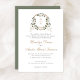 Weiße Blumengrün Ivy Monogram Wappen Einladung Hochzeit. Formelle Vorlage für die traditionelle Hochzeit