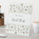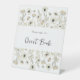 Das weiße Blumen-Babyduschenschild weist zwei weiße Blume mit der Meldung "Bitte unterschreiben Sie unser Gästebuch" auf. Perfekt für jede Jahreszeit! Bitte lesen Sie die Sammlung für weitere Variationen und koordinierende Elemente.