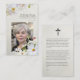 This elegant memorial prayer card features a soft white floral design that frames a customizable photo of your loved one, creating a serene and comforting tribute. The front includes editable text for the name, dates, and a short remembrance line, all set against a clean, light background.