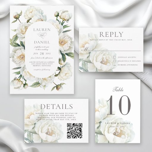 Elegant White Peonies Watercolor Floral WeddingDesignt von Susan Frazier