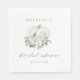 Herbst Brautparty Servietten mit einem weißen Wasserfarbenkürbis mit weißen und grauen Aquarellfarben-Blume und Blätter. Personalisieren Sie Ihre Daten mit Namen und Datum.