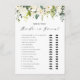 Er sagte, sie sagte: Rate mal, wer es zuerst gesagt hat! Ein Brautparty mit Blumengerichten, mit weißen Rosen in Aquarelltönen, Hydrangeas-Blume und Grünflächen. Personalisieren durch Hinzufügen von Namen, Ereignis und Datum. Diese weiße Blumenbride oder Groom-Gutschein-Spielkarte ist ideal für Frühlings- und Winterspiele, Brautpartys und Polterabende.