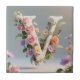 White Floral Textured Monogram Letter V Fliese