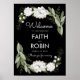 20x28 weiße blumengeschmückte Hochzeitsrigs heißen Poster willkommen. Personalisierbar. Teil einer Sammlung