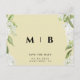 White Floral Yellow Monogram Wedding Rett Date Postkarte