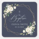 Add a personal touch to your baptism celebration with these stylish and memorable party items! Design features white watercolor flowers, greenery and gold frame on navy blue background.