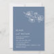 This elegant contemporary wedding invitation features white line art flowers and white script on a dusty blue background.