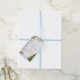 Zarte Gold- und Silberbaumdekorationen, umgeben von salzgrünem festlichem Blattwerk mit frisch gefallenem Schnee in einem Winterwunderland mit Hochzeitsringen.