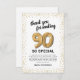 Elegante 90. Geburtstagsparty danke Ihnen Karten mit einem einfachen weißen Hintergrund, der in jede Farbe geändert werden kann, Gold funkelnd Glitzer, neunzig goldenen Hellium-Ballons und ein modernes Dankeschön-Template, das leicht zu personalisieren ist.