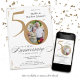 White Gold Kalligraphie 50. Hochzeitstag Einladung. Elegant konzipierte besondere Hochzeitstag-Einladung, mit einem individuellen Foto des Ehepaares und Skriptkalligraphie mit Vintagen blühend Elementen. Ein wahrhaft unvergesslicher und besonderer Weg, diesen Meilenstein zu feiern!