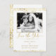 White & Gold Confetti-Foto Hochzeit Sichern Sie da Ankündigungspostkarte