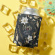 Elegante Schwarz-weiße und Gold Blumenkranz Heiraten an Liebe Polterabend kann kälter / koozies Vorlage. Diese Designs können für Ihren Besondere Anlass Personalisiert sein und wären perfekt für Ihre Hochzeit, Brautparty, Engagement Party, Geburtstagsparty und viele weitere Besondere Anlässe.