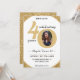 Schwarz-Gold Glitzer Geburtstagsfeier Party Einladung für einen 40-Jährigen. Funkelnd Glasdesign ideal für Frauen. Passen Sie das Alter an, um Ihren Anlass zu Anzug und fügen Sie ein persönliches Foto des Empfängers. Ideal für einen 40-jährigen Geburtstag oder eine Geburtstagsfeier für einen vierzigjährigen Geburtstag.