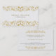 Eleganter goldener Glitzer Textur drucken Vintage Wirbel mit Blumenmuster auf weißem Hintergrund. Maßgeschneiderte Hochzeitsplaner mit doppelseitiger Visitenkartenvorlage.