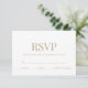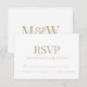 Moderner RSVP für die Hochzeit von Weiß und Gold. Ein schönes Design mit elegantem, goldfarbenem Text in antiken Farben auf Weiß. Zurück zeigt Braut und pflegt moderne Monogramm-Initialen. Personalisieren Sie Ihren Text. Besuchen Sie unseren Shop, Austen & Grace, um die komplette Hochzeitssuite, passende Produkte und vieles mehr anzuschauen, und kontaktieren Sie uns, wenn Sie Hilfe benötigen contact@austenandgrace.com