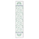 Eleganter Tischläufer für Weihnachtsessen und Weihnachtsfeiern in Weiß mit marineblau Details und einem Muster grüner Mistelzweige. Fügen Sie Ihren ersten Kranz in einen Misteldraht ein.