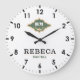 White Green Monogram Crest Luxury Gift Große Wanduhr