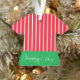 Niedliche Rot-Weiß-Streifen auf dem Grünen Shirt mit Geburtstagsgeschmack für die erste Weihnachtsfeier des Babys. Name auf der einen Seite, Datum auf der anderen.