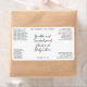 This elegant product label for cosmetic bottles features a white background with black text with handwritten/typed styled fonts. This label contains space for your product name, business name, product weight, ingredients, instructions, social media, and business address. This label measures 3.75 inches by 2 inches (95 mm by 51 mm) and is suitable for bottles with a diameter of 1.2 inches (31 mm) or more such as 4 oz (120 ml) bullet, cylinder, and boston round bottles. It can also be used for cosmetic jars and other types of cosmetics packaging.